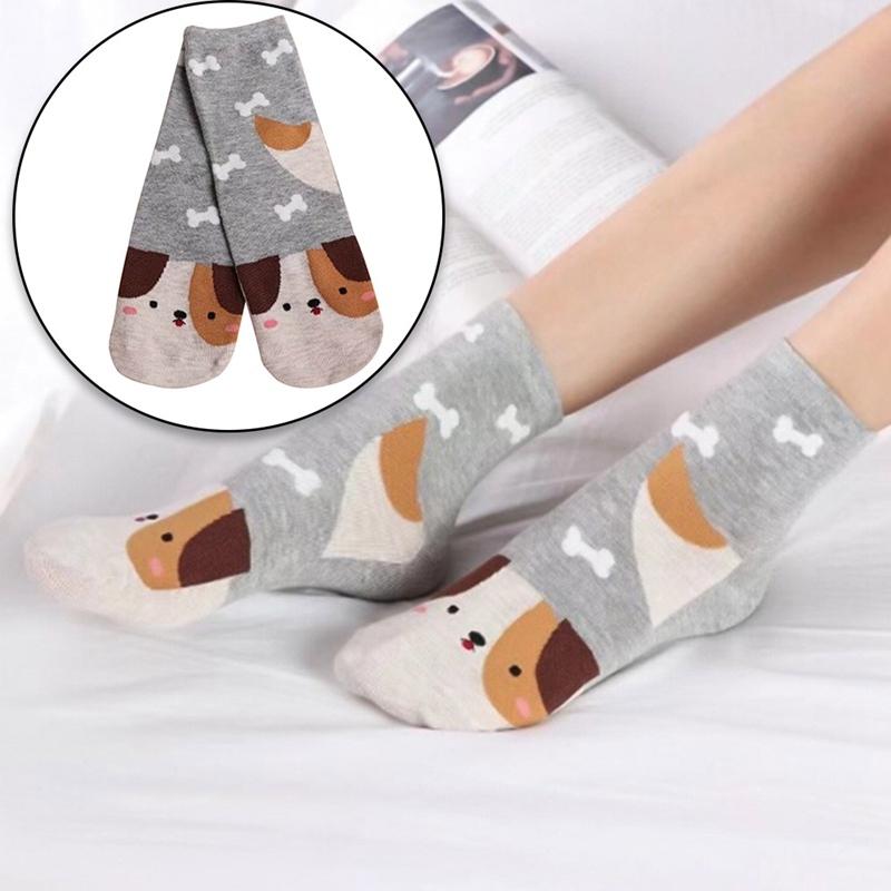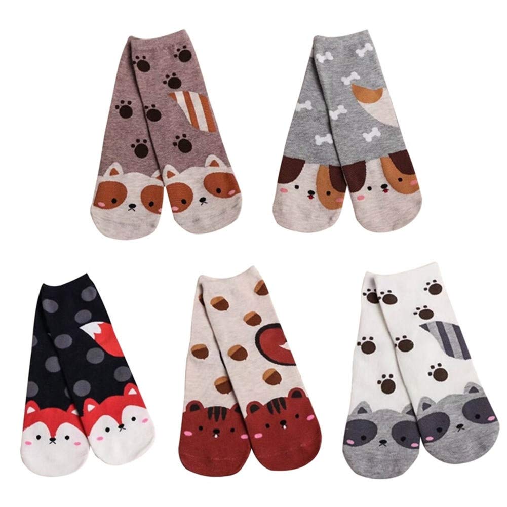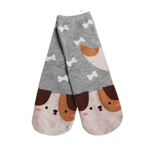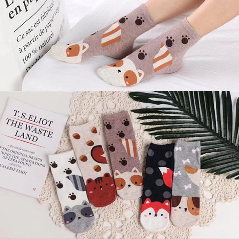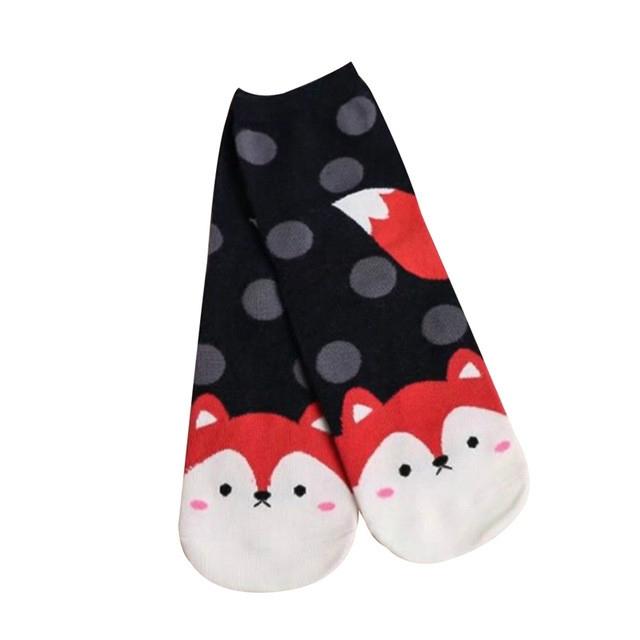 Sokker med søte dyr frampå foten. Hund, katt, ekorn og rev.