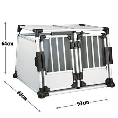 Oppdag den perfekte løsningen for trygg og komfortabel transport av hundene dine med Trixie Aluminium Bilbur Dobbelt. Med fokus på sikkerhet og kvalitet, gir dette bur et stillegående miljø og optimal plass for både én stor hund eller to mindre hunder.