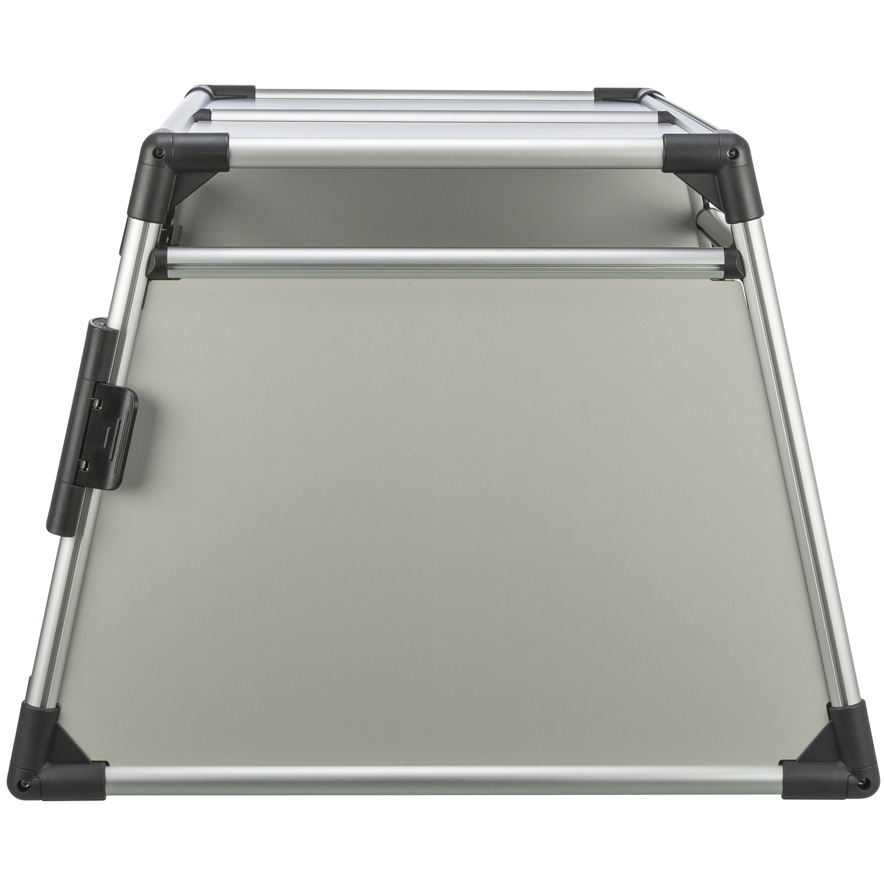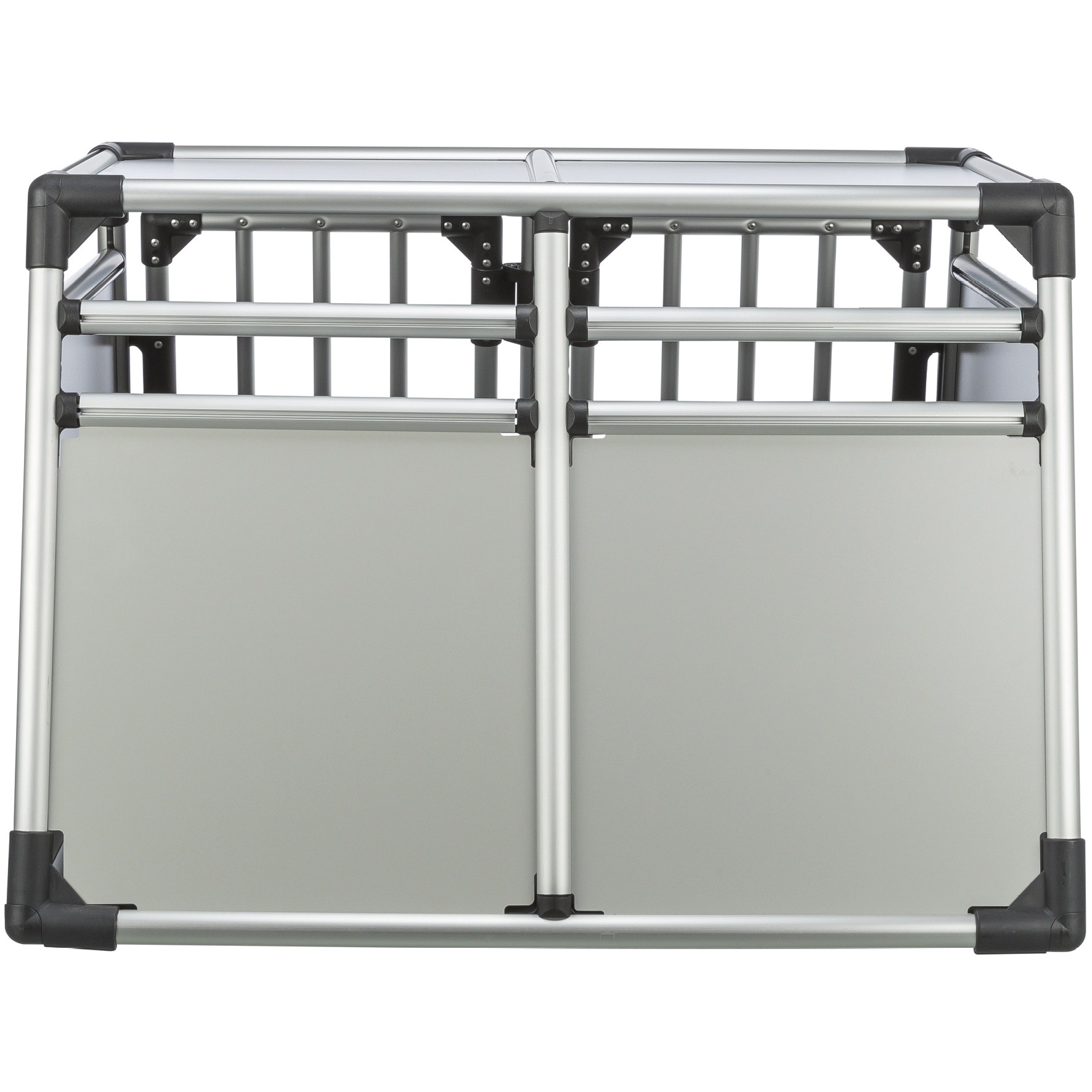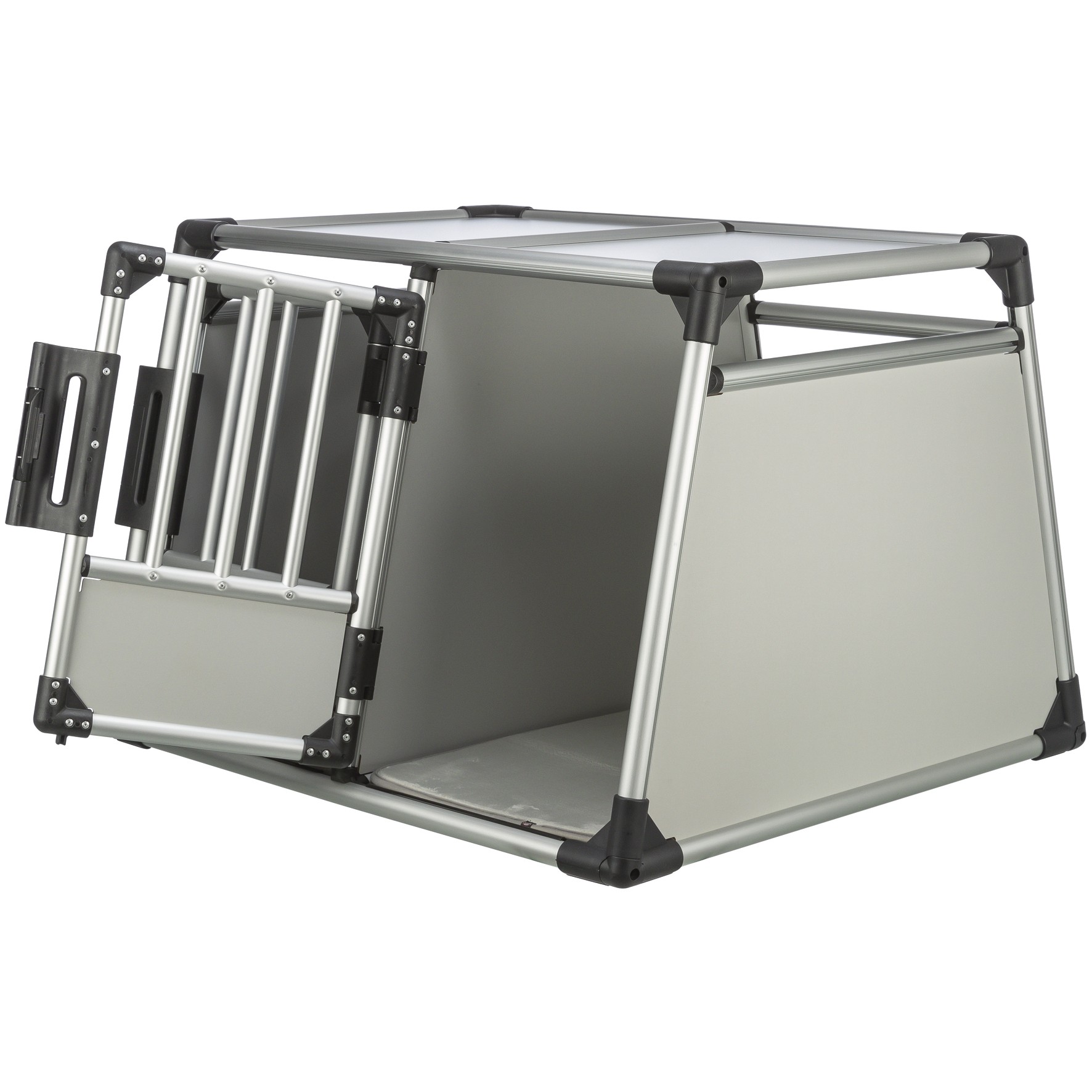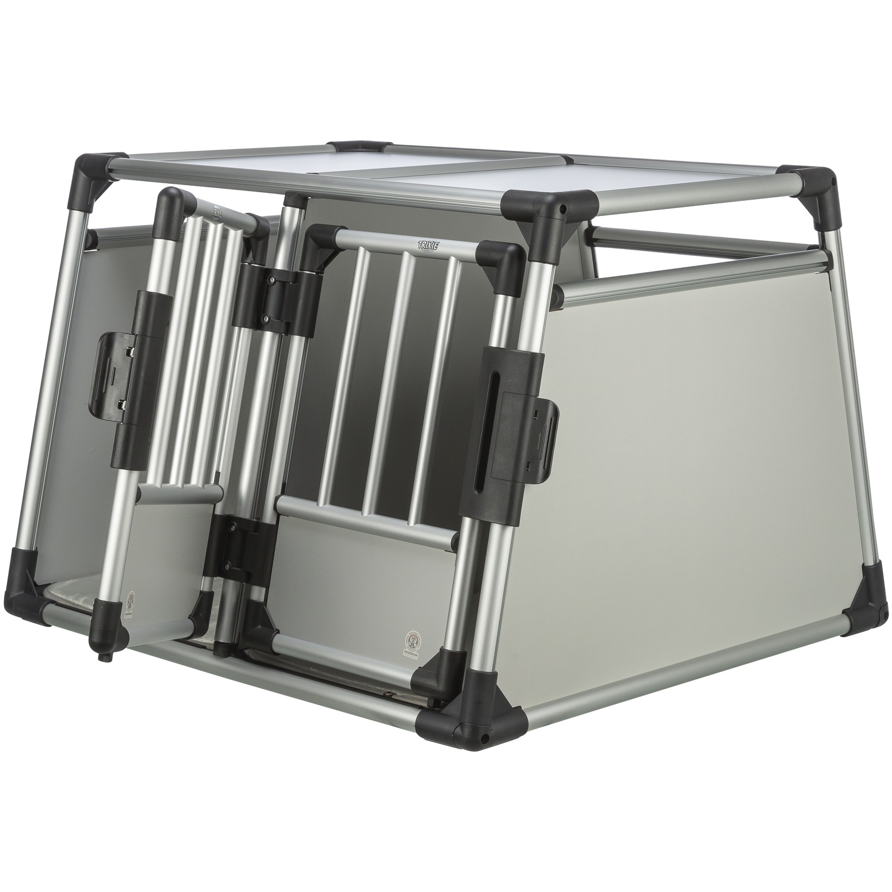 Trixie Aluminium Bilbur Dobbelt er designet for å gi både hunder og eiere en bekymringsfri kjøreopplevelse. Buret er laget av ekstremt stabilt aluminium, noe som sikrer en solid og stødig transportløsning. Med skrånede sider får du optimal plassutnyttelse i bagasjerommet, og den høye bunnen beskytter mot skitt og gjør at hundene forblir trygge under reisen.
