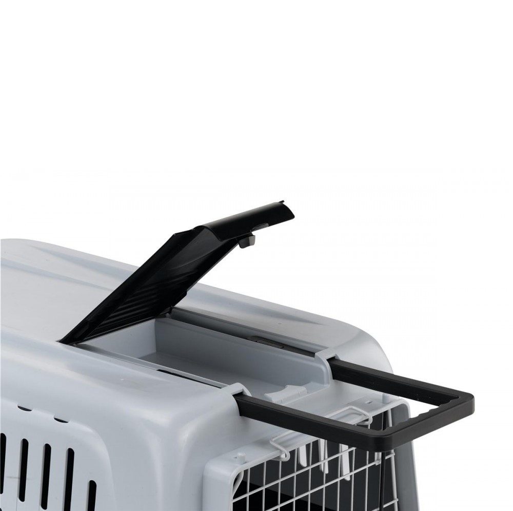 - Ventilasjon og komfort: Med ventilasjonsåpninger på alle sider får hunden god luftstrøm, og gitterdøren gir mulighet for god utsikt.