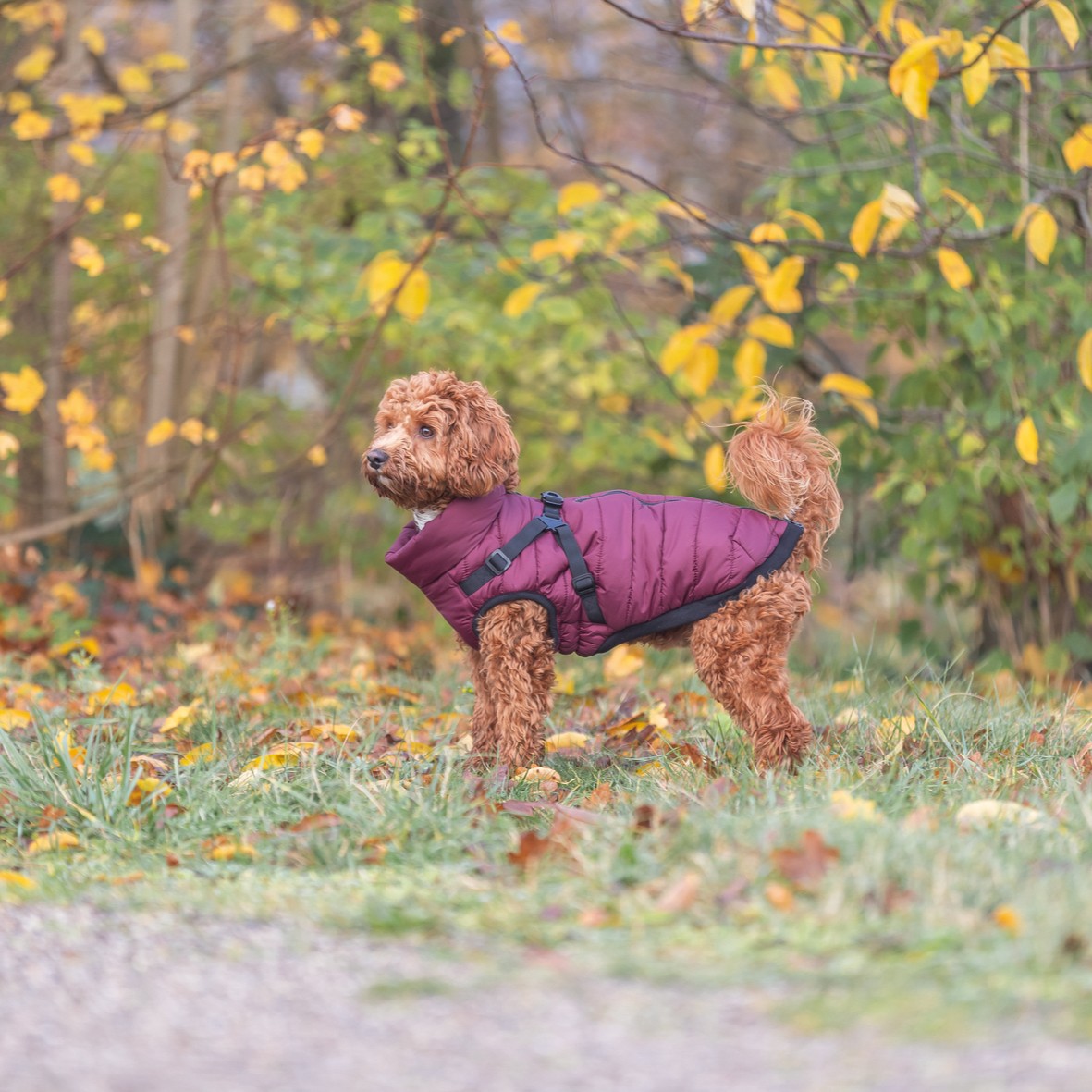 Vinterjakke og sele i ett. 200g vattering, vannavvisende, justerbar passform. XXS-M for små til mellomstore hunder. 2 farger. Norsk vinterkvalitet.