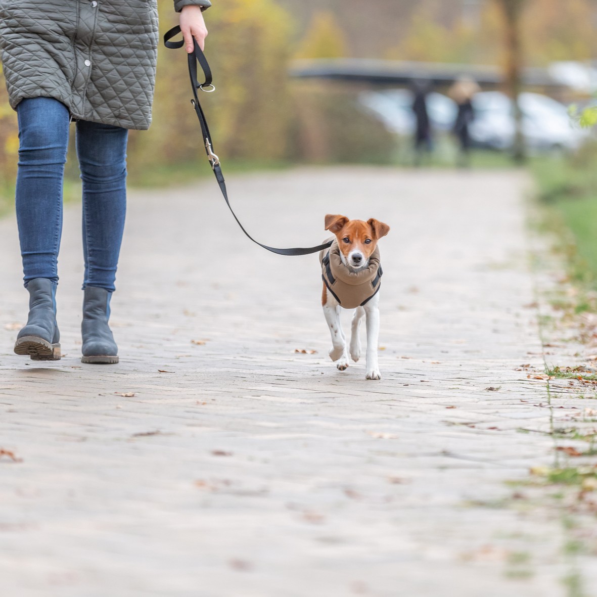 Trixie Pirou er en vinterjakke med integrert hundesele som gir varme og samtidig fungerer som festepunkt for line. Jakken kombinerer vær- og kuldevern med praktisk funksjonalitet for daglige turer.