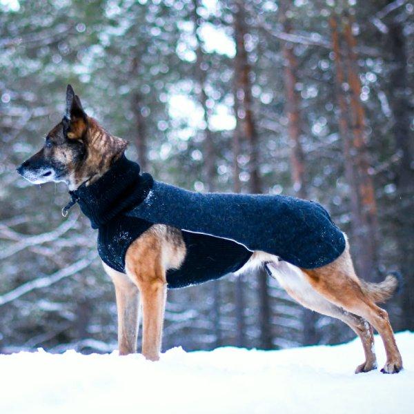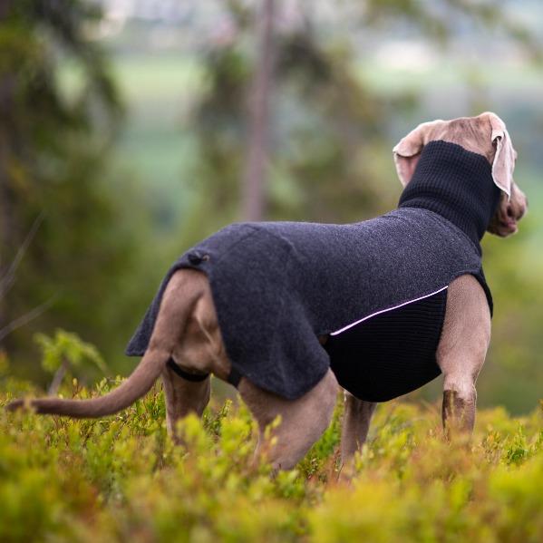 Sidney ulldekken er utviklet spesielt for hunder med kort pels, lite pels eller redusert underull. Med sin tettsittende design og 100% merionull gir dekkenet effektiv isolasjon uten å begrense hundens bevegelsesfrihet. Designet med høy krage for ekstra varme i nakke og hals, og med bakbeinstrikker for optimal passform.