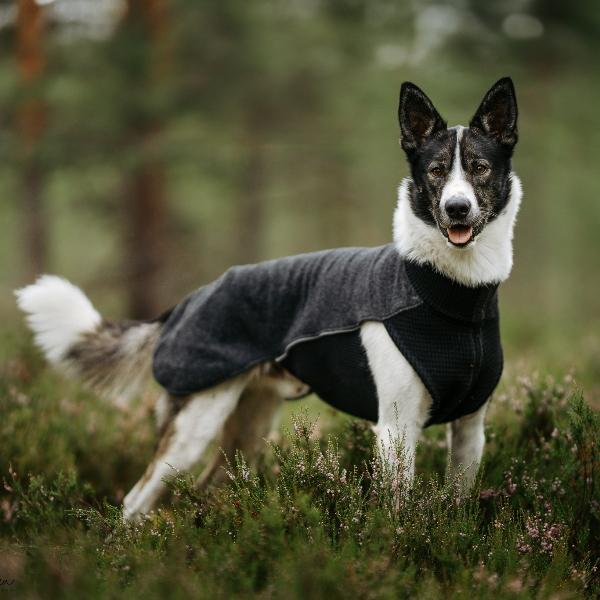 Temperaturregulering: Ull isolerer effektivt ved å fange luftlommer mellom fibrene. Merionull kan absorbere opptil 30% av sin egen vekt i fuktighet uten å føles fuktig, noe som holder hunden tørr og varm selv ved moderat aktivitet.