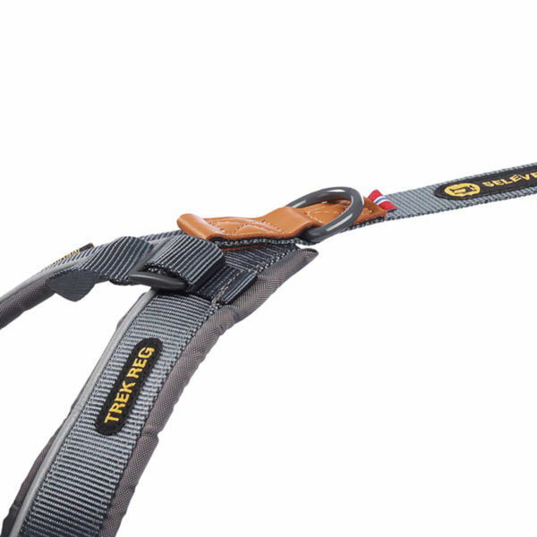 Seleverkstedet Trekreg Harness er sydd i beste kvalitet nylon med stoffkvalitet, refleks, spenner og søm i toppklasse. De elegante skinndetaljene forsterker ringfestene, og gir i tillegg selen et designuttrykk som er flott for øyet.
