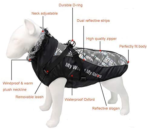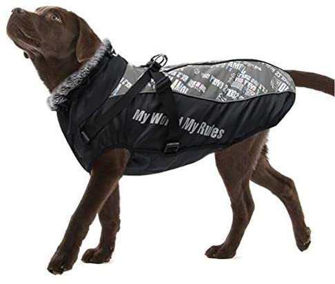 Vinterdekken til hund med refleks, sele og varm krage