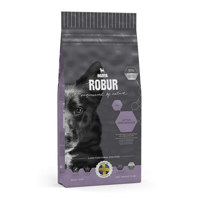 Helfu00f4r til voksne hunder med hu00f8yt aktivitetsnivu00e5 eller undervektige hunder. Helu00f4r er tillaget pu00e5 en hvete-fri oppskrift, har et hu00f8yt energiinnhold og er naturlig optimalisert for hunder med et hu00f8yt aktivitetsnivu00e5, valper og unge hunder, drektige og diende tisper. Den hu00f8ye energi- og nu00e6ringstetthet gir selskapshunden friskhet og vitalitet, gir utstillingshunden en vakker pels, bruks- og trekk hunden de beste forutsetninger for et godt samarbeid. Robur Active Performance er beriket med ferske svenske kylling og vill elg – som gir utmerket smakelighet og fordu00f8yelighet. Kosttilskudd med glukosamin og chondroitin hjelper for bedre ledd.