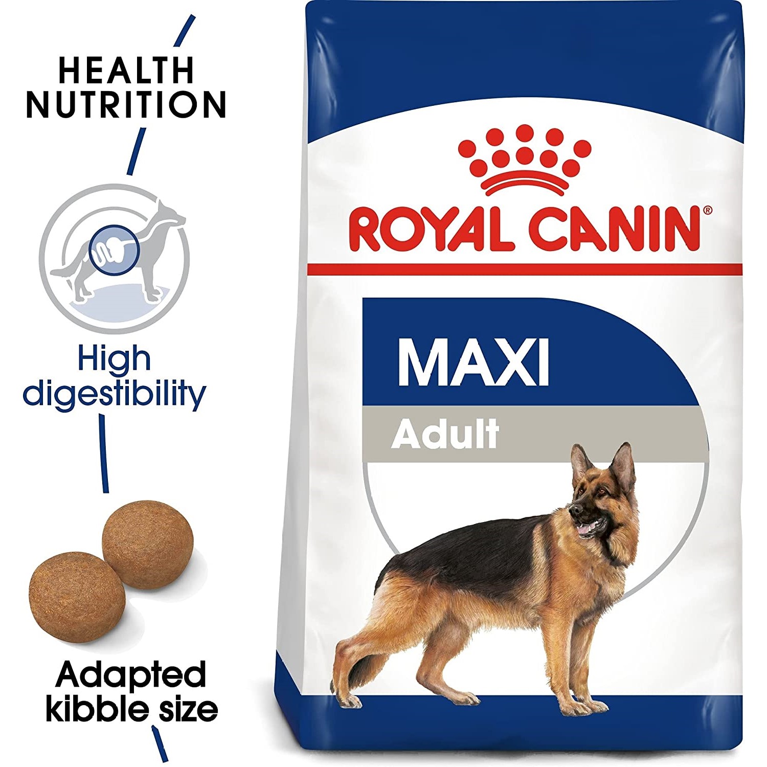 Royal Canin Maxi Adult bidrar til en god hjertefunksjon ved hjelp av tilskudd av taurin, som stimulerer hjertekontraksjonen. Videre fremmer fôret friske ledd, takket være et høyt innhold av glukosamin og kondroitin samt EPA og DHA med betennelsesdempende egenskaper.