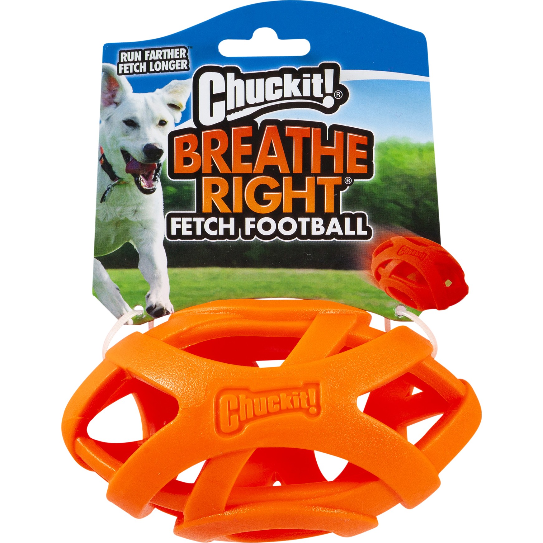 Chuckit! Air Fetch Football er en apporteringsleke i rugby/fotballform med åpen nettstruktur som tillater luftstrøm mens hunden holder leken i munnen. Den unike konstruksjonen gjør det enklere for hunden å puste under apportering sammenlignet med massive leker.