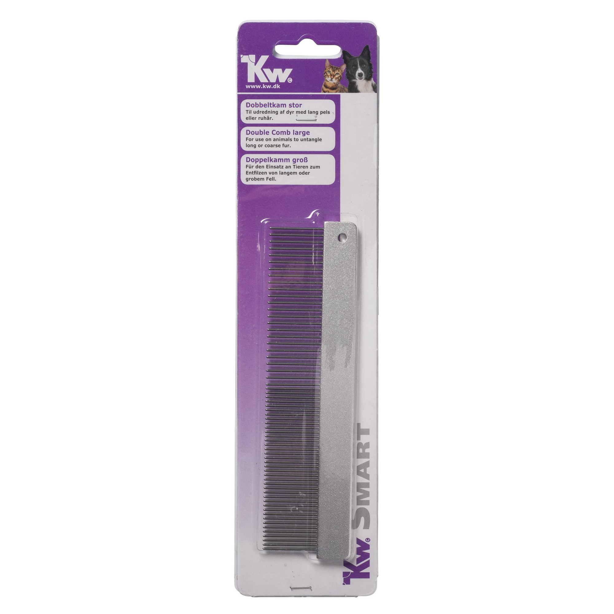 KW Smart Dobbel Kam er laget av holdbare materialer som sikrer langvarig bruk. Dette verktøyet er ikke bare praktisk, men også et nøkkelverktøy for enhver hundeeier som ønsker deres firbeinte venn å se best ut til enhver tid. Sørg for å inkludere denne kammens kvalitet i din hundepelspleierutine!