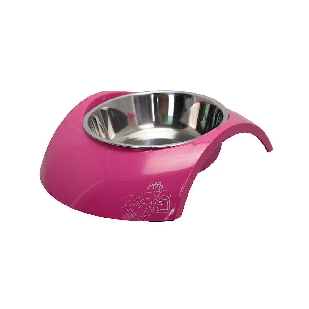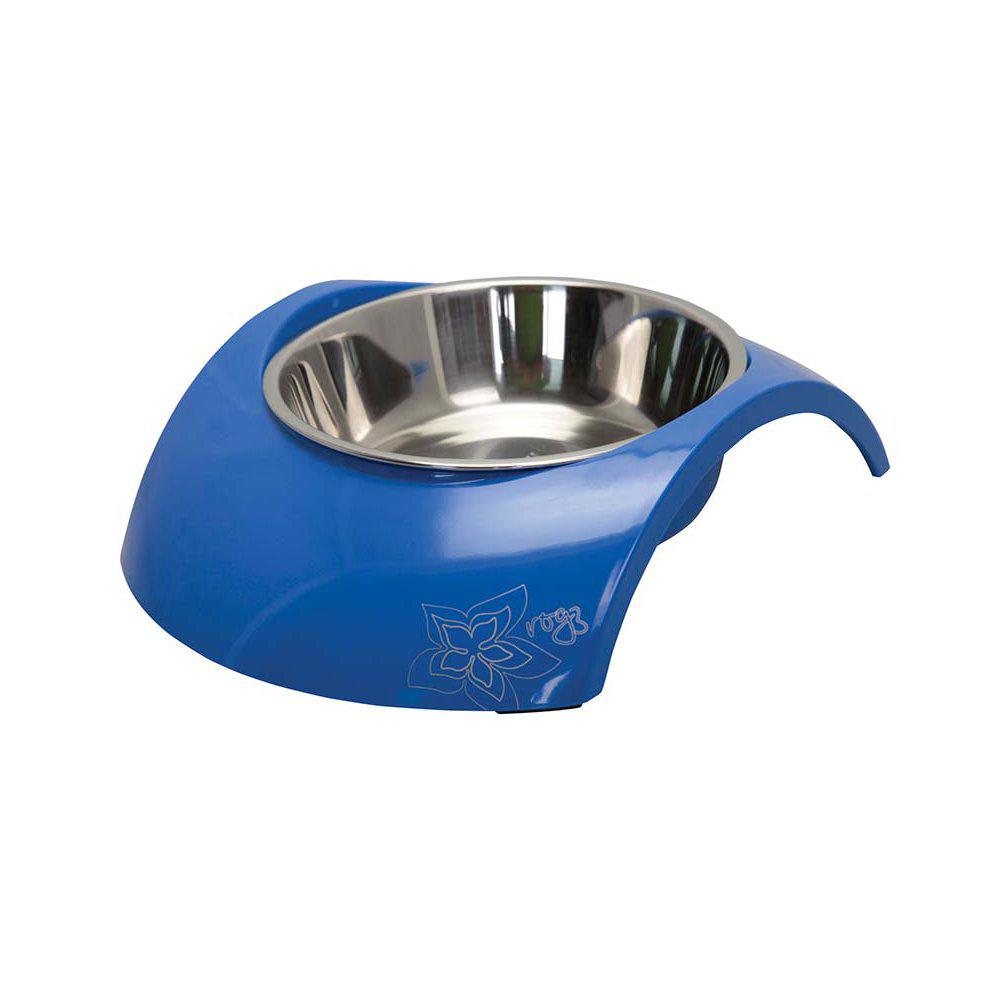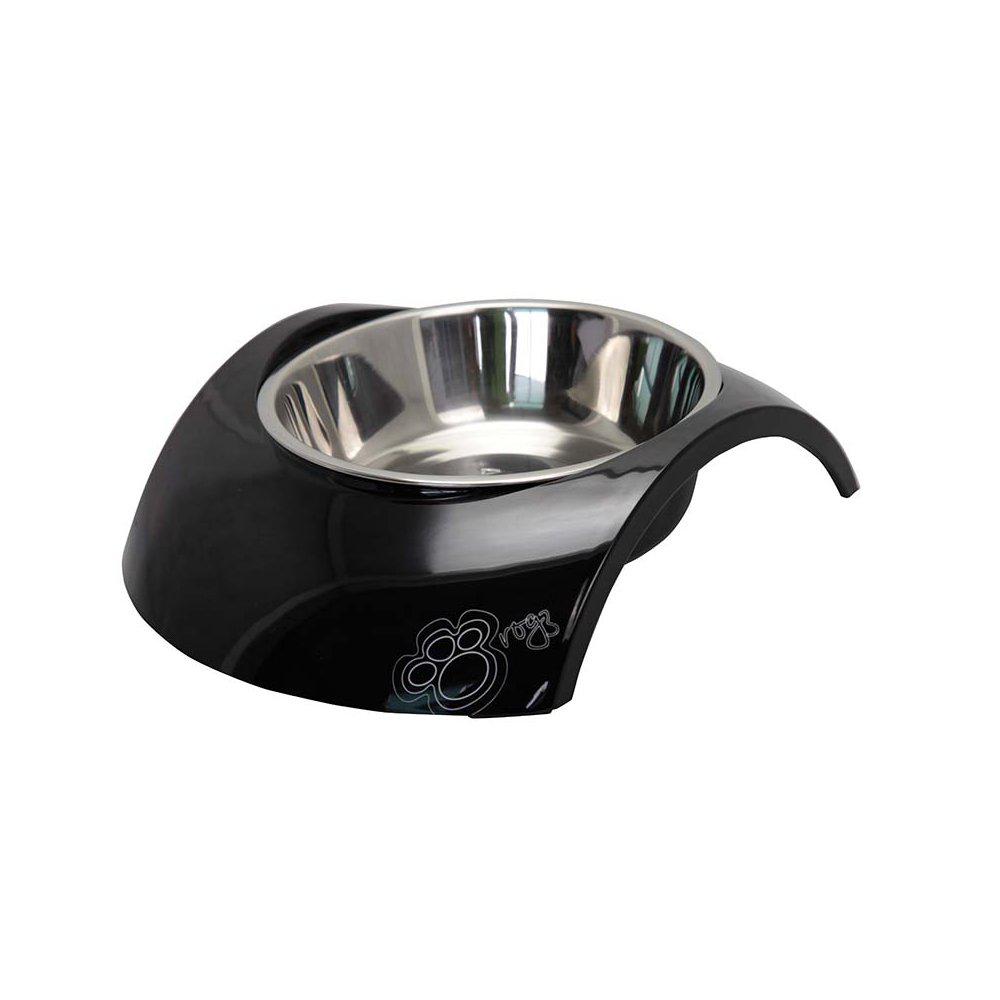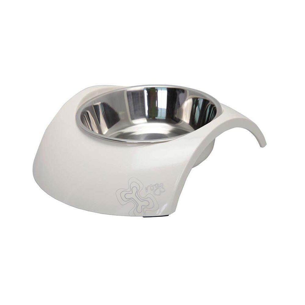 Ergonomisk 2-i-1-skål i melamin og rustfritt stål.