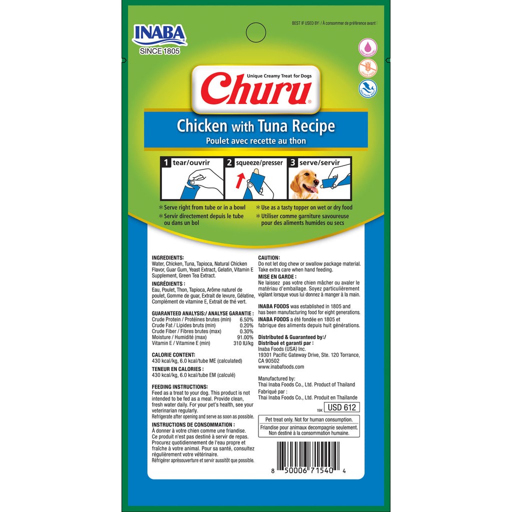 Oppdag Churu til hund fra Inaba Foods – premium, lavkalori snacks laget av bærekraftige råvarer som villtunfisk og gårdsoppdrettet kylling. Perfekt som belønning eller appetittvekker. Inaba Foods, etablert i 1805, er kjent for kvalitet og innovasjon. Gi din hund det beste med Churu!