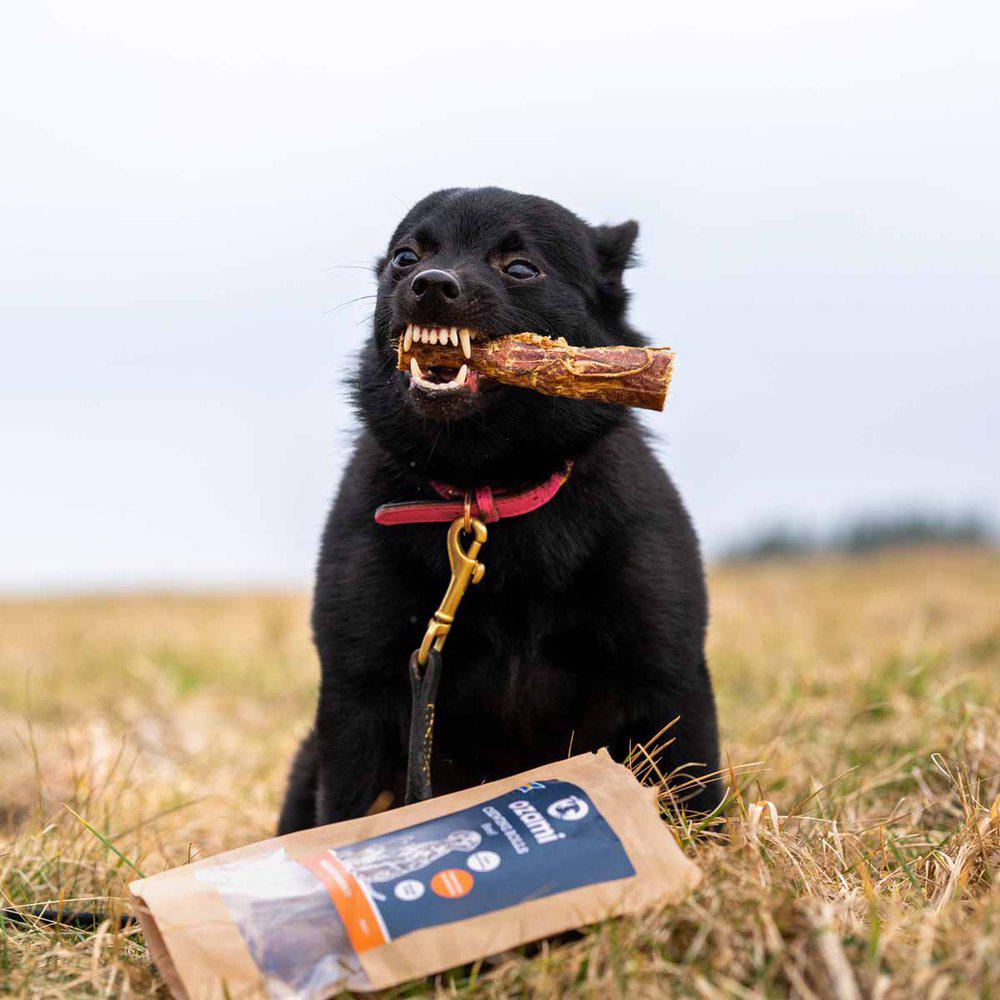 Ozami Premium Beef Roll hundesnacks er tørket på svak varme for å beholde sine helsefremmende egenskaper. Hundesnacksen inneholder 100 % svensk storfe. Kornfritt og 100 % naturlige hundesnacks, produsert i Sverige. Inneholder 4 ruller.