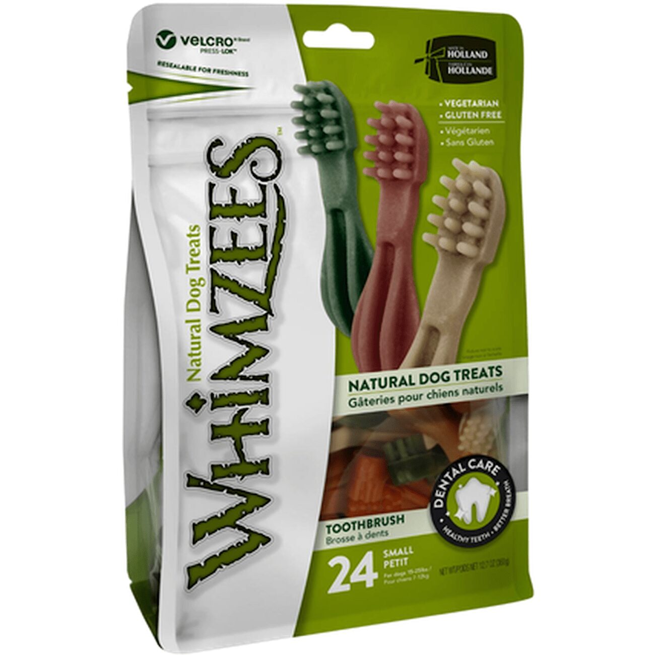 Whimzees tyggebein finnes i ulike morsomme former, og disse tannbørstene er både gode og nyttige å tygge på! Den vegetabilske sammensetningen, laget av helt naturlige ingredienser, kan redusere forekomsten av plakk og tannstein mekanisk når hunden tygger.