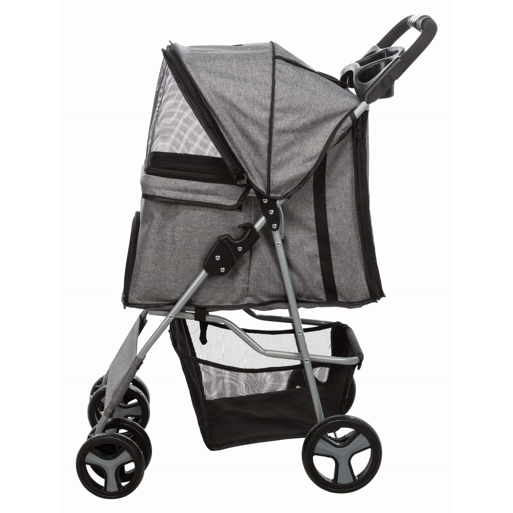 - Hvorfor bære når du kan trille? Dette er hundevognen du trenger. Rett og slett et veldig kult produkt for deg som alltid vil ha med hunden din, men ikke har mulighet til å bære den og den kan ikke gå så langt. Det kan være du har vond ryggen og hunden sliter med leddproblemer. En vogn løser dette. Her får hunden – eller katten – et trygt og rolig sted. Vognen kan lukkes helt tett, og har paneler med netting for god lufting. Når du skal ta kjæledyret ut eller inn i vognen, åpner du helt opp og får lett tilgang gjennom den store åpningen.Hjulene er laget for å trille jevnt uten motstand. To parkeringsbremser sørger for sikkerhet. Kjæledyret festes med to bånd på innsiden for å sikre det. Av praktiske ting kan vi nevne polstret håndtak, koppholder og lagringskurv under. Du slår vognen enkelt sammen. Enhåndsfunksjon loves, så dette blir enkelt og greit. Vi syns dette er et spennende produkt som absolutt har en målgruppe. Litt utradisjonelt i Norge, men ikke la deg stoppe av dårlig rygg eller alderen og fysisk form på kjæledyret ditt. Gå på tur.