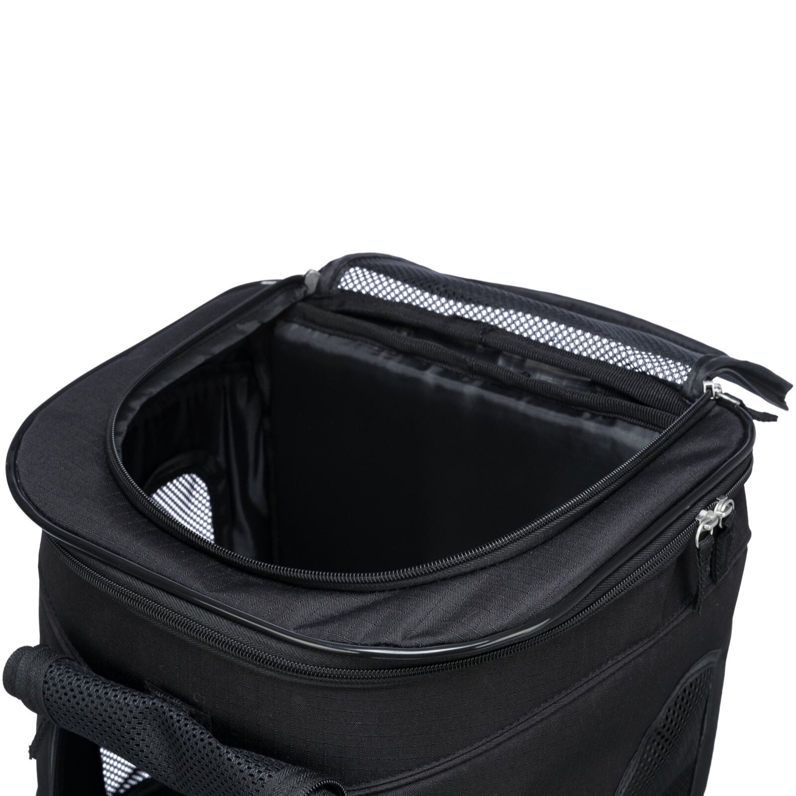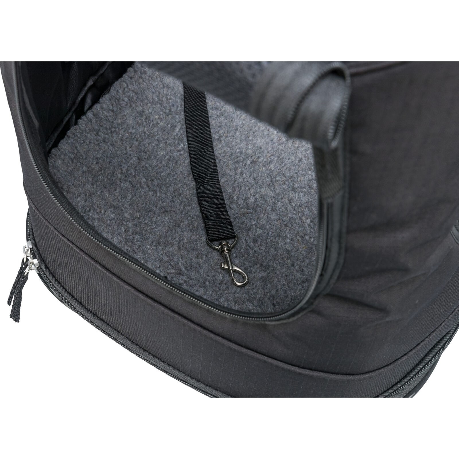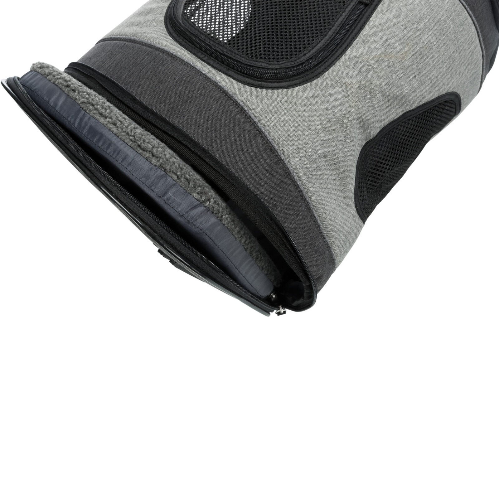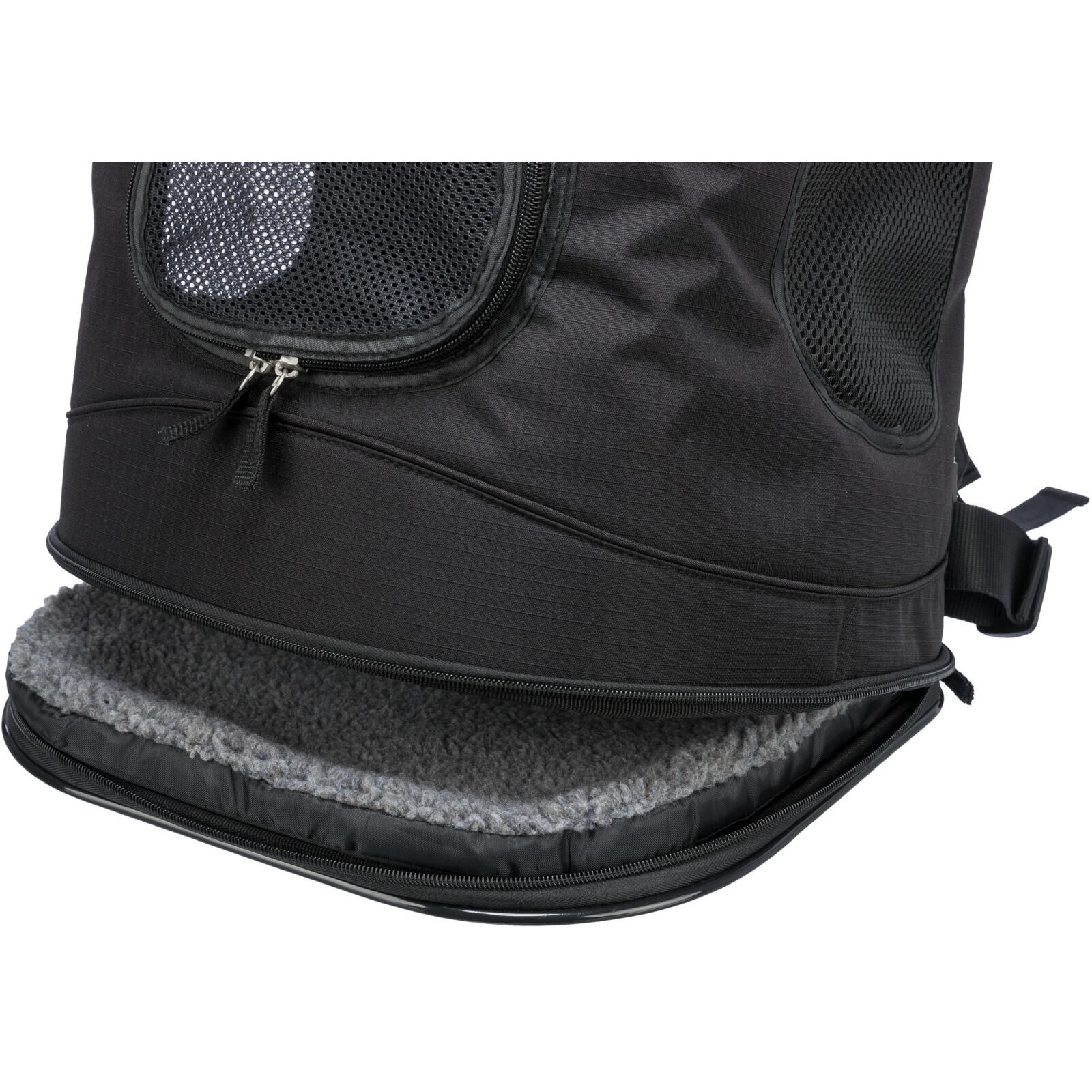 Kvaliteten er god. Dette er en robust ryggsekk. Åpning finner du i topp og front, mens det er netting for luft og utsyn på siden. På innsiden får kjæledyret myk og koselig polstring i lammeull-stil. Denne kan tas ut for rengjøring.