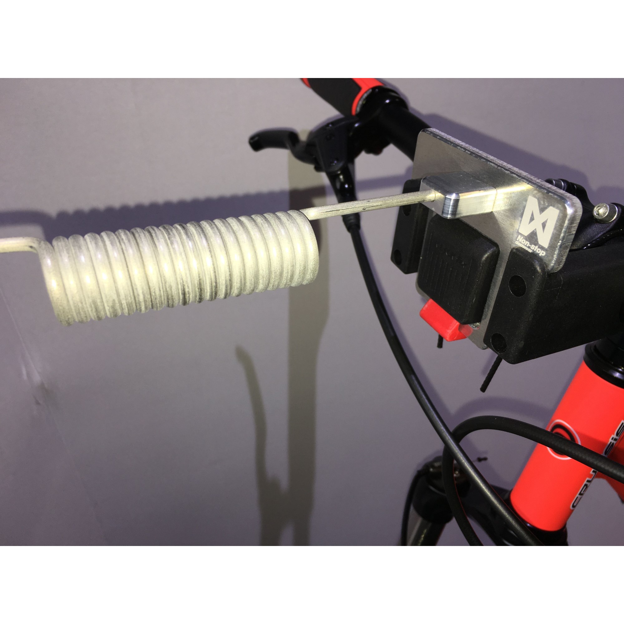 non-stop sykkelantenne er en smart, avtakbar sykkelantenne hund som hindrer at du får kjørestrikken i hjulet. Et meget godt sykkelfeste til sykling med hund.