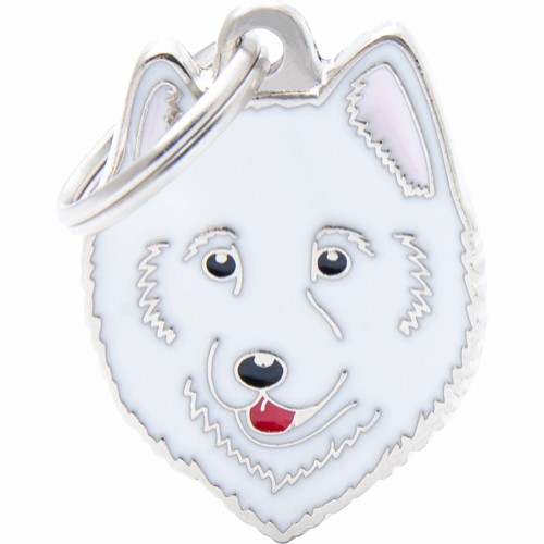My-Family hundetegn Samojedhund – Skjønnhet, unikhet, konstant søken etter perfeksjon. MyFamily Friends-samlingen tilbyr hundrevis av ID-merker som representerer de mest populære hunde- og katterasene, nøyaktig gjengitt i hver detalj. Hver brikke, håndemaljert, er et Made in Italy håndverkerunderverk som fascinerer for sin store uttrykksevne og utrolige sannhet. Et perfekt eksempel på hvordan en metallgjenstand kan vekke følelser. Laget i Italia